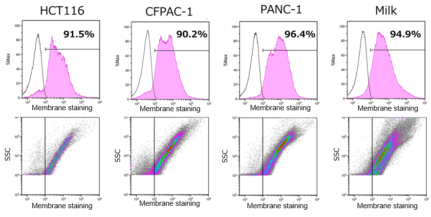 As a result, all tested samples showed a high staining efficiency of over 90%. In addition, little variation in staining performance was observed among different EV types.