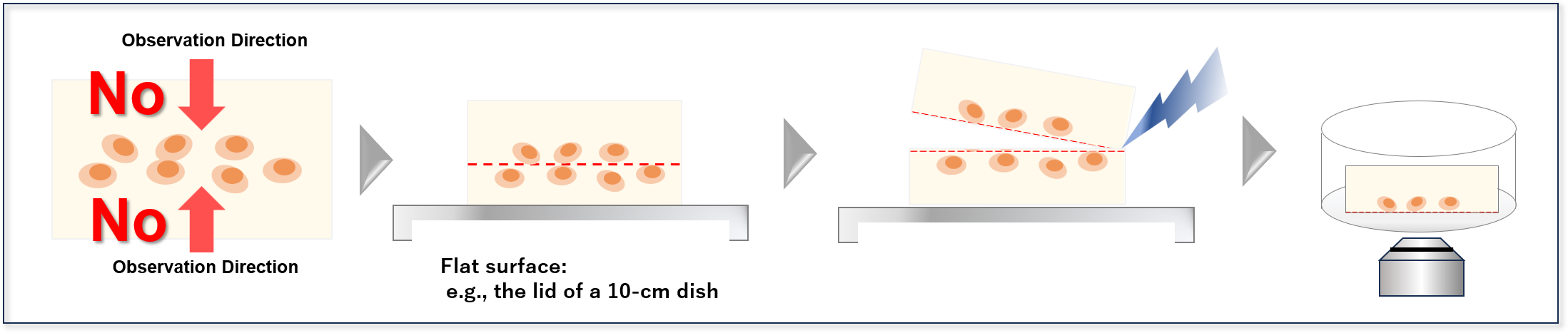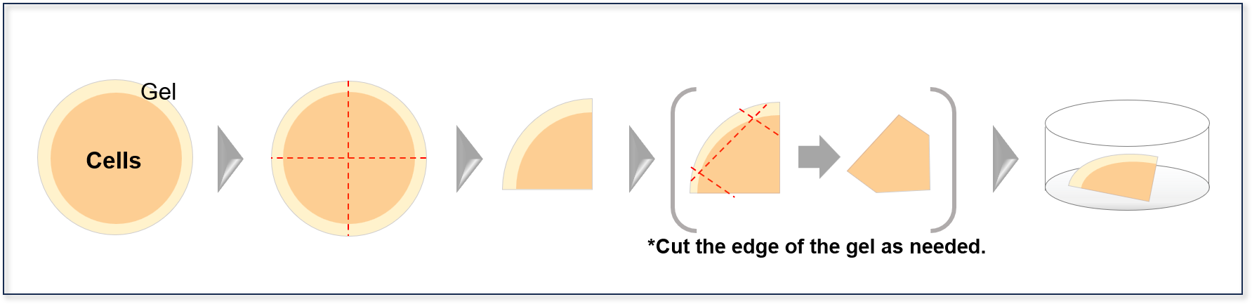 2.      ※For example, when using a 35‑mm dish, dividing the gel (approximately 40 mm in diameter) into four pieces allows up to four imaging sessions from a single gel.