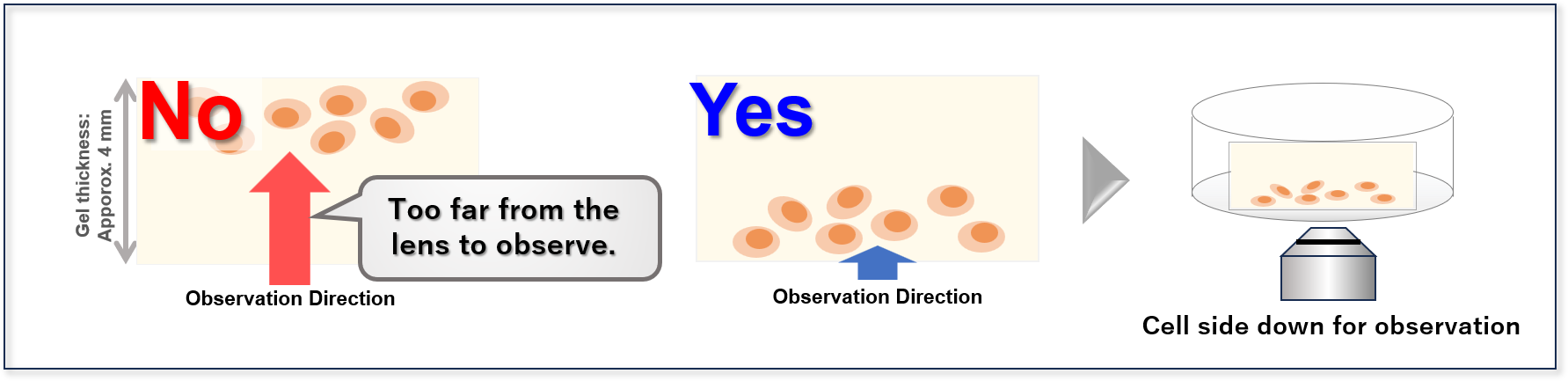 5. Examples of cases where cells in the gel cannot be imaged due to their position, and corresponding countermeas