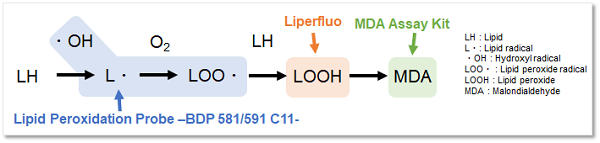 Reactive oxygen species (ROS) are highly reactive chemicals formed from diatomic oxygen (O2). In recent years, it has been reported that ROS reacts with superoxide causing lipid peroxidation, which is associated with cell death and various diseases such as inflammation. As described above, ROS undergoes various mechanisms and therefore, it is important to evaluate the lipid peroxidation level with appropriate reagents.