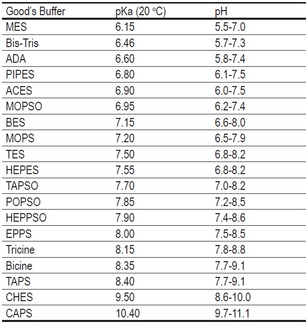 2. N. E. Good, et al., Hydrogen ion buffers for biological research. Biochemistry. 1966;5:467-477.