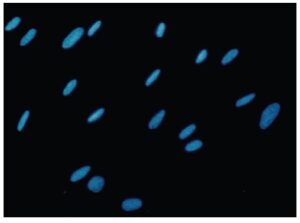 5.Observe the cells under a fluorescence microscope with 350 nm excitation and 460 nm emission filters.