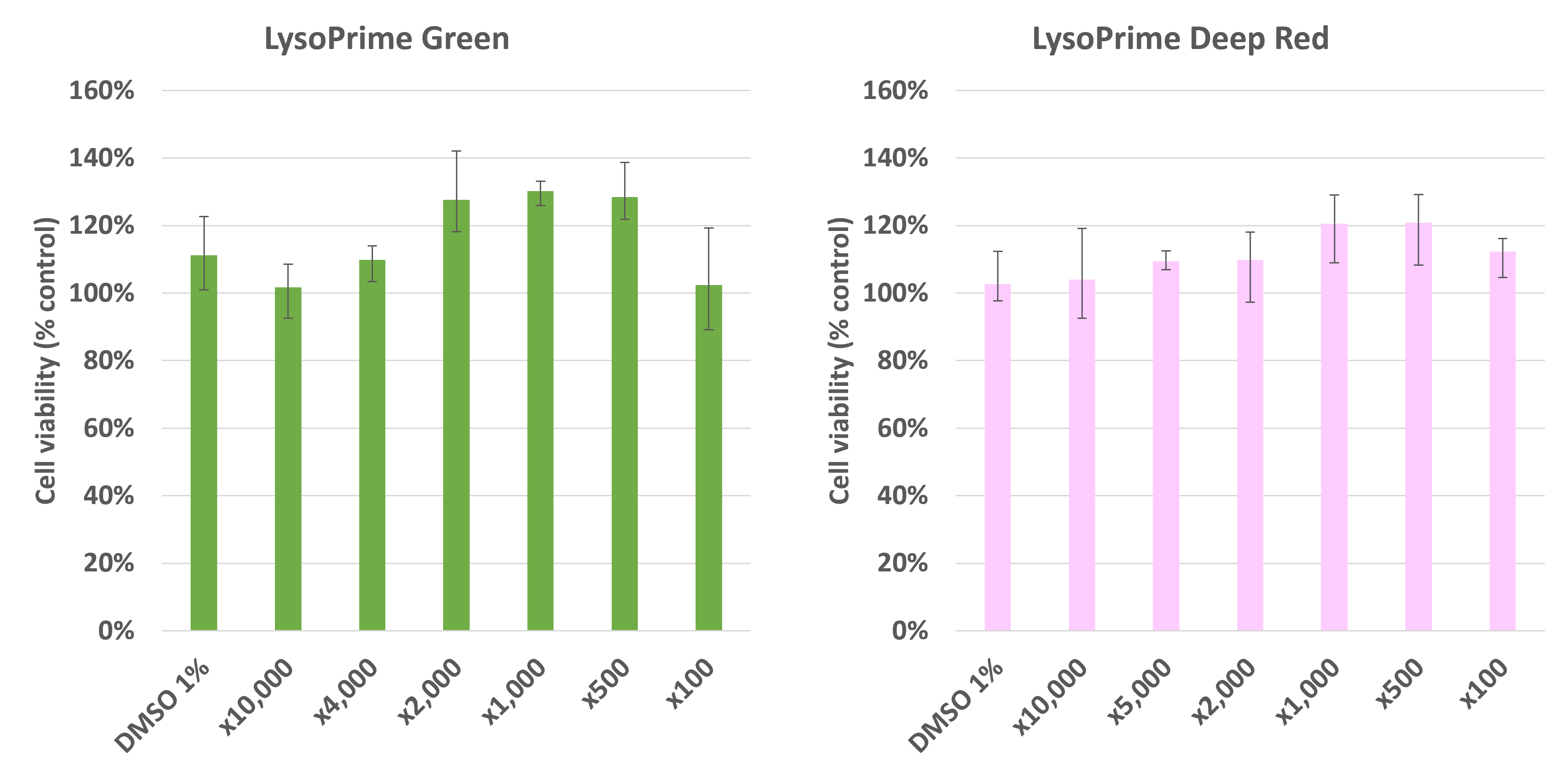 Cytotoxicity of LysoPrime Green or LysoPrime Deep Red with various concentrations.