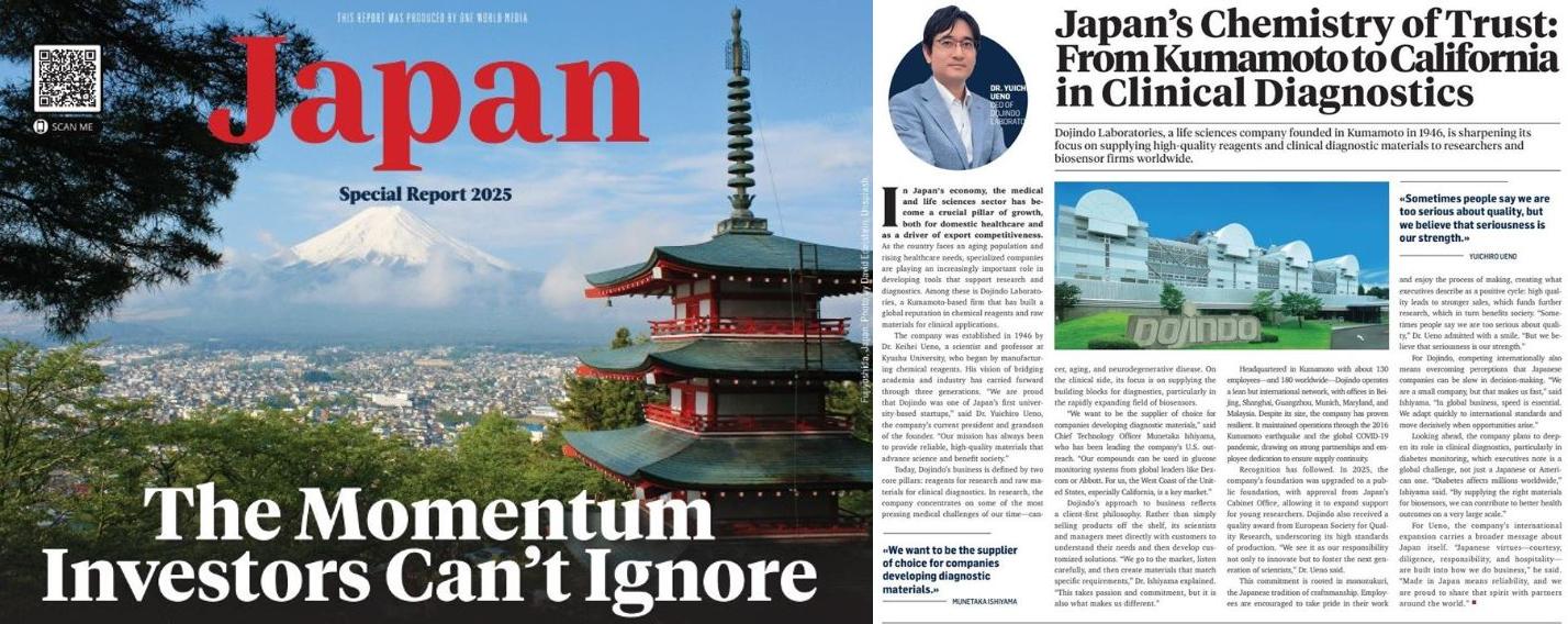 In this month’s Japan-focused feature, “The Momentum Investors Can’t Ignore,” our company was introduced under the headline “Japan’s Chemistry of Trust: From Kumamoto to California in Clinical Diagnostics,” highlighting our role as a trusted supplier of high-quality reagents and diagnostic raw materials to researchers and companies worldwide.