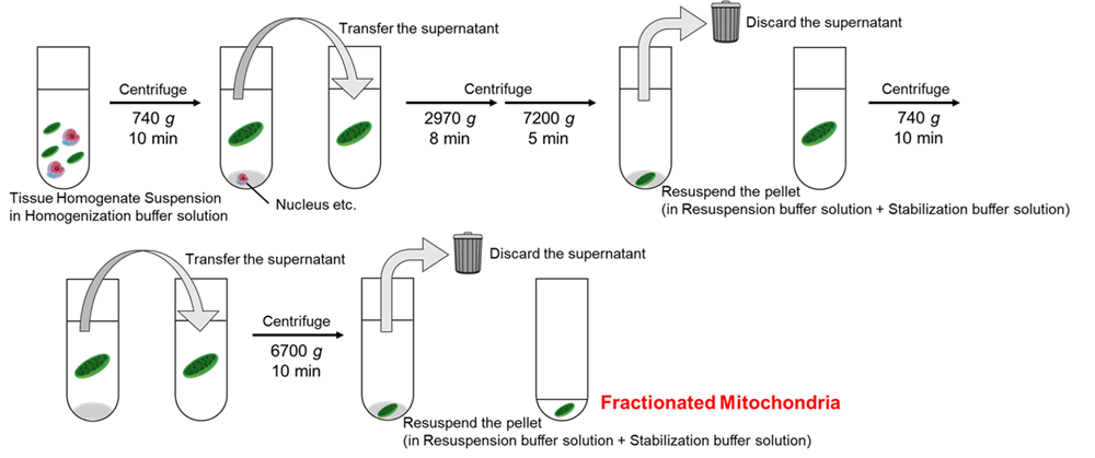 Mitochondria are one of the most important organelles in aerobic organisms, responsible for producing ATP, the cell's energy source. Beyond energy production, they are also involved in lipid and amino acid metabolism, calcium regulation, and redox control. Mitochondrial dysfunction is known to cause numerous diseases, including cancer, aging, neurodegenerative diseases such as Alzheimer's disease, and mitochondrial disorders. For mitochondrial function assessment, fractionated mitochondria are used to avoid interference from other organelles. In recent years, detailed functional analysis using fractionated mitochondria has become increasingly active.