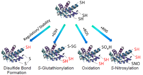 Modification of protein thiols is one of the most important post-translational modifications and it occurs according to the redox states in cells. It has recently been revealed that the modifications of thiol groups control cellular functions such as transcription, protein expression, cell death, etc. Therefore, detection of the redox states of the individual protein is important to understand cellular events.
