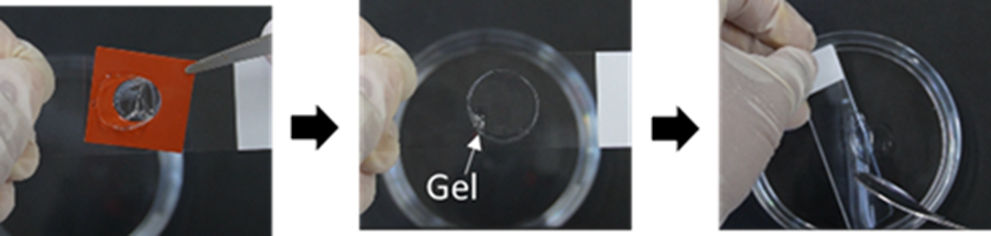 - Using a spatula, gently transfer the gel to a 35 mm observation dish without damaging it.