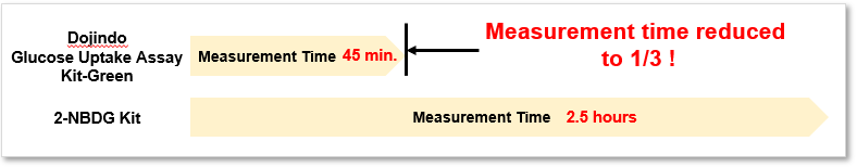 The use of a high-fluorescence intensity dye enables higher sensitivity measurements in a shorter time than the conventional method (2-NBDG).